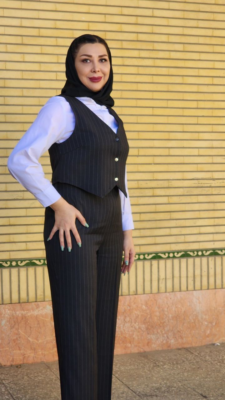 قد شلوار 99 و دور باثن شلوار 109و قد کت 67 عرض زیر بغل کت 48 فاصله سر استین تا یقه 71 قد ژیله 49 سانت عرض دور شکم 94 سانت